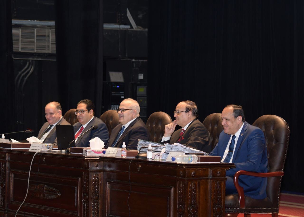 عقد مجلس جامعة القاهرة، جلسته الشهرية بقاعة الاحتفالات الكبرى، برئاسة الدكتور محمد عثمان الخشت، وبحضور نواب رئيس الجامعة وعمداء الكليات وأمين عام الجامعة، لمناقشة عدد من الموضوعات المتعلقة بالعملية التعليمية والبحثية والخدمية واستعدادات الجامعة للعام الدراسي الجديد 2022 - 2023