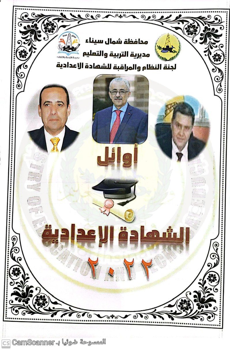 ينشر موقع “امتحانات مصر”، اسماء الأوائل لشهادة الإعدادية لمحافظة شمال سيناء عبرموقعها الخاص وتوفر منصة امتحانات مصر رابط الشهادة الإعدادية من هنا رابط الحصول على نتيجة الشهادة الإعدادية 2022 محافظة شمال سيناء من هنا واعتمد الدكتور محمد عبد الفضيل شوشه محافظ شمال سيناء، نتيجة شهادة إتمام مرحلة التعليم الأساسي ( الشهادة الإعدادية) للفصل الدراسي الثاني للعام الدراسي ٢٠٢١ / ٢٠٢٢، بنسبة نجاح ( ٨٢ ٪)